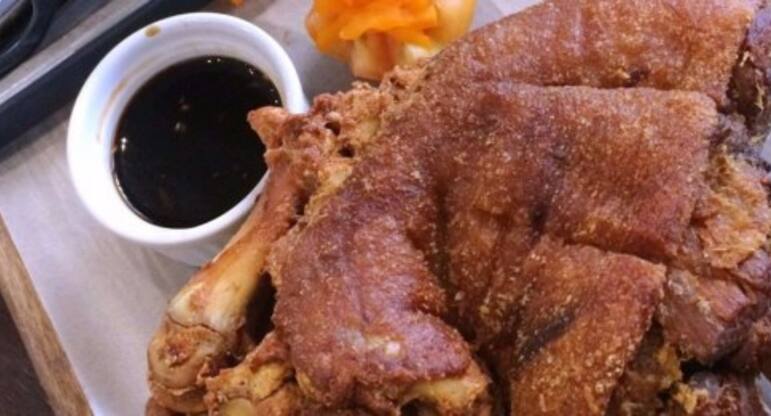 Kuya J Crispy Pata Regular. Make it a hearty celebration by adding Kare-Kare with Kuya J peanut sauce and Kuya Js specialtythe deep-fried Crispy Pata thats juicy and tasty from skin to meat. A beefy and tasty twist sa classic sinigang na sakto sa asim at sobra sa sarap.