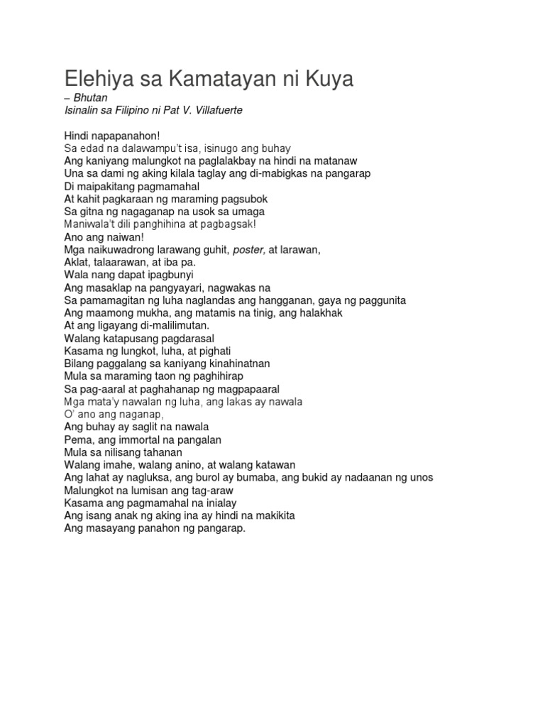 Elehiya Sa Kamatayan Ni Kuya Pdf